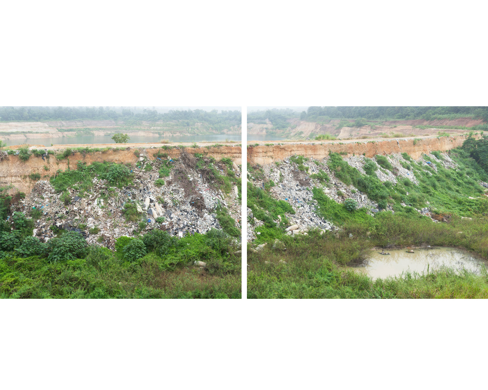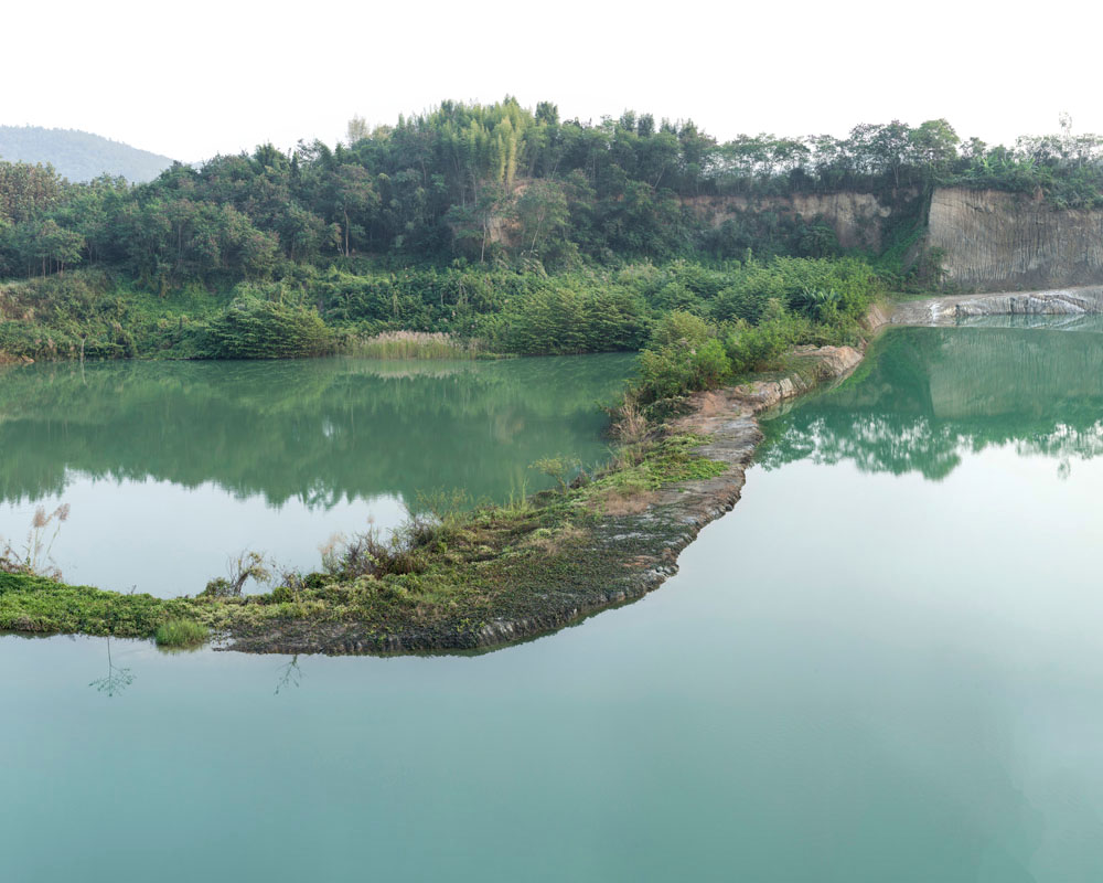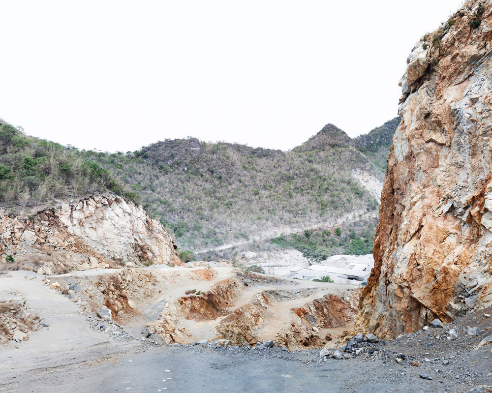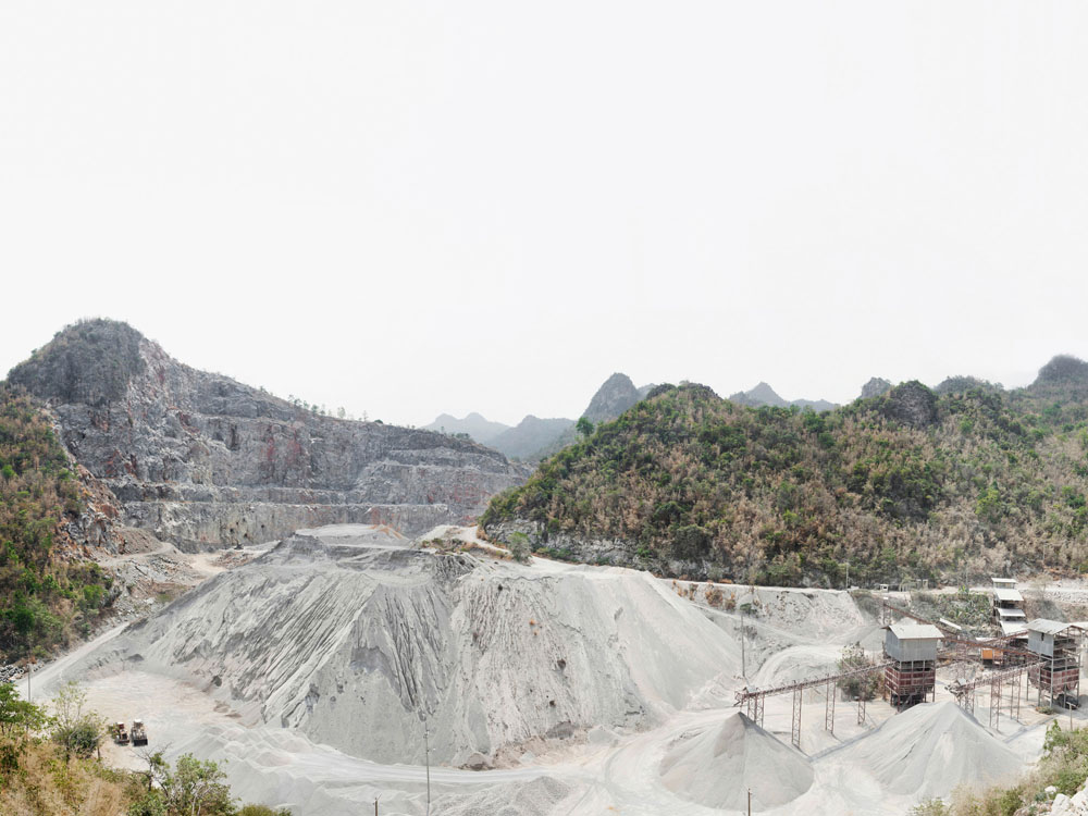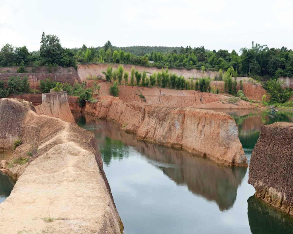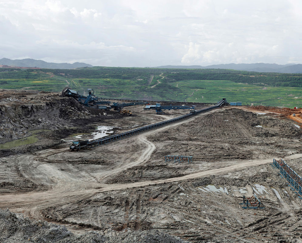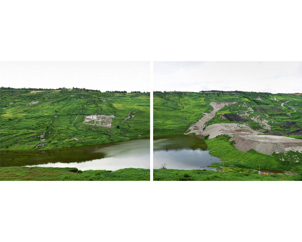 These photographs serve to impact on one’s body such that awareness takes root not just in the mind as a dawning visual and mental realization, but also immediately and powerfully as a physical response. Though the concerns are ecological and social, most thought-provoking is when the visual results are more absurd than devastating – mines turned into picturesque lakes, rubble and rubbish strewn down a magnificent man-made cliff, or encroaching farmland harassing a rainforest into retreating to a lonely hill. The picturesque or dramatic landscape that makes us sigh or gasp is revealed on closer examination to be a consequence of large-scale corporate activity over time on nature – or of nature over time on such activity; the answer is not usually clear-cut.